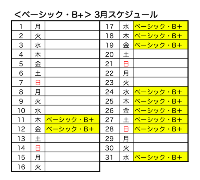 菅野講師によるエキスパートスキーヤーのためのベーシックトレーニング、ベーシックB+。 3月の予定が決まりました。