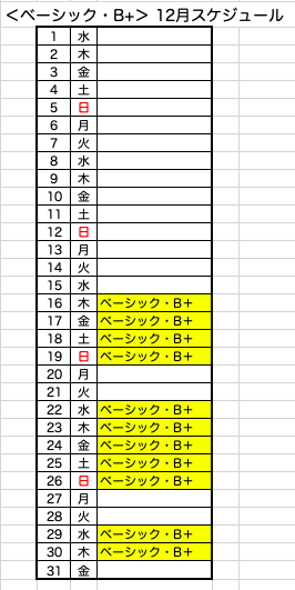 ベーシックB+(プラス)。(レッスンについてはこちらをご覧ください)