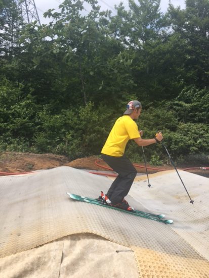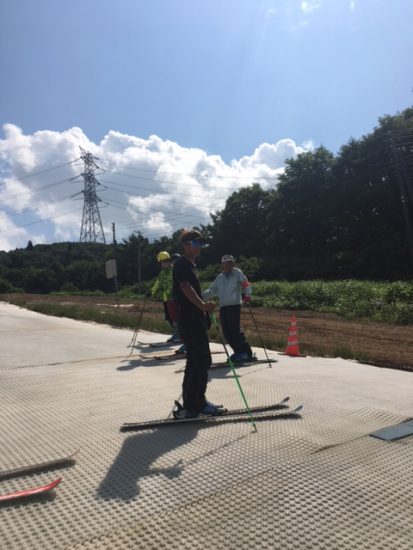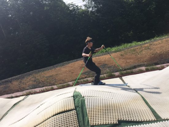 雪上よりもごまかしのきかないスノーマット(ピスラボ)ゲレンデでバランス良く、美しいパラレルターンを目指します。