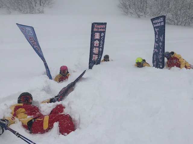 三日三晩雪が降り続き、かぐらスキー場は完全に白銀の世界とパウダースノーに覆われています。