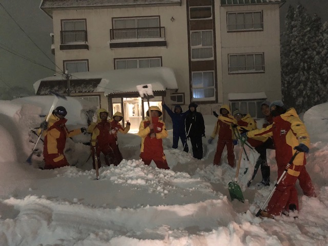 約1時間かけて、このメンバーで寮の駐車場の車を全部救出いたしました。